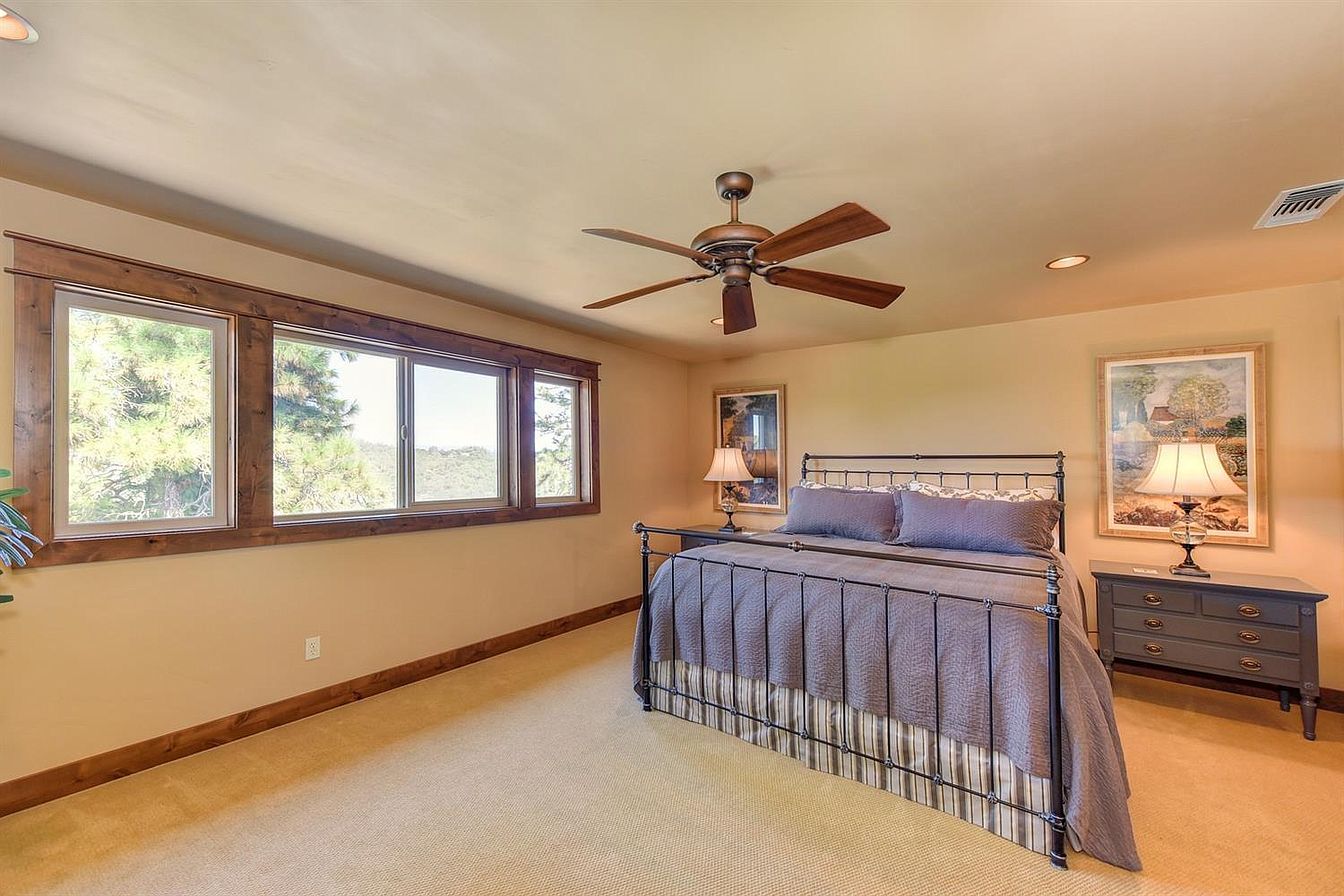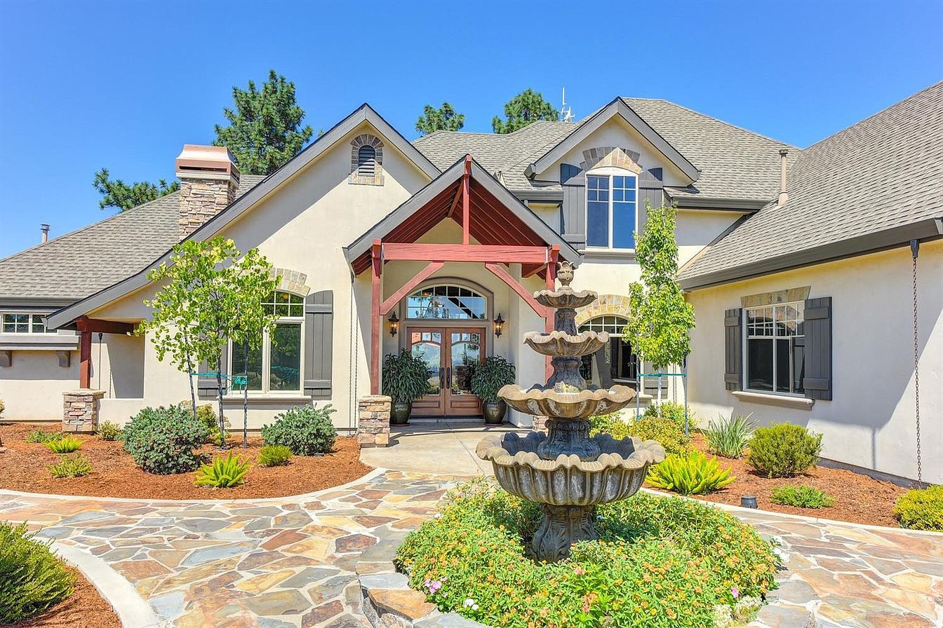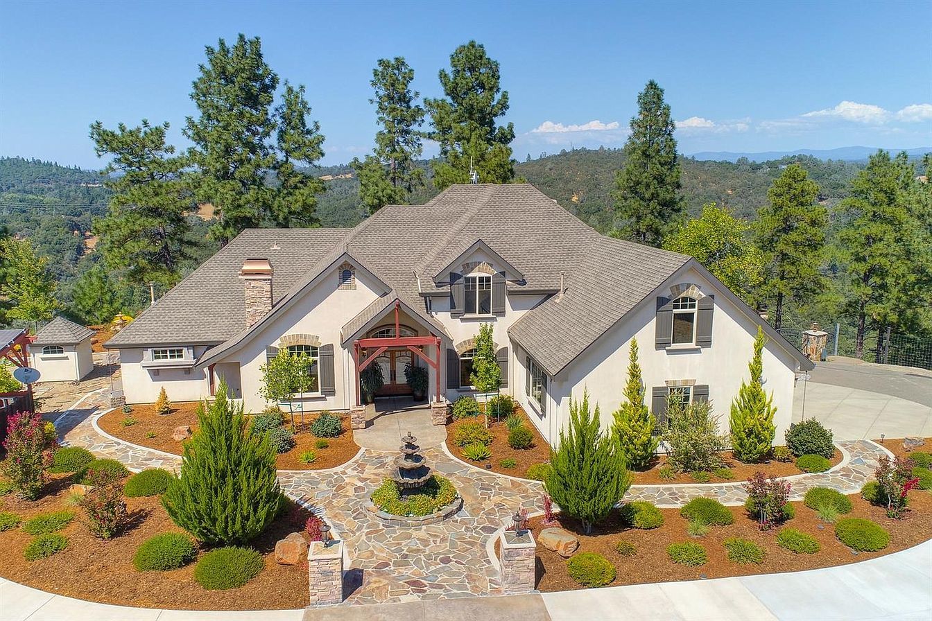 Gorgeous custom home appointed with high end amenities; vaulted ceilings and expansive windows. Open plan is spacious and functional with views that encompass the Sierras, rolling hillsides, and skyline. Attached 3-car garage; solar system is owned. The home is 3,914 sq. ft with 3 bedrooms (Master on the first floor), bonus room and office. Second dwelling has a second story apartment (1,199 sq. ft., 1 bed, 1 bath & generates income) with an open plan and a large deck. Apartment, main floor foyer, laundry and 2nd full bath appointed with high end finishes/storage. Custom garage below is 2,166 sq. ft. with cabinets, utility sink, office and more; a car enthusiasts' dream (8-car+). Location is within close proximity to everyday conveniences, HWY 50, El Dorado County's best wineries and a short drive to Placerville & South Lake Tahoe.